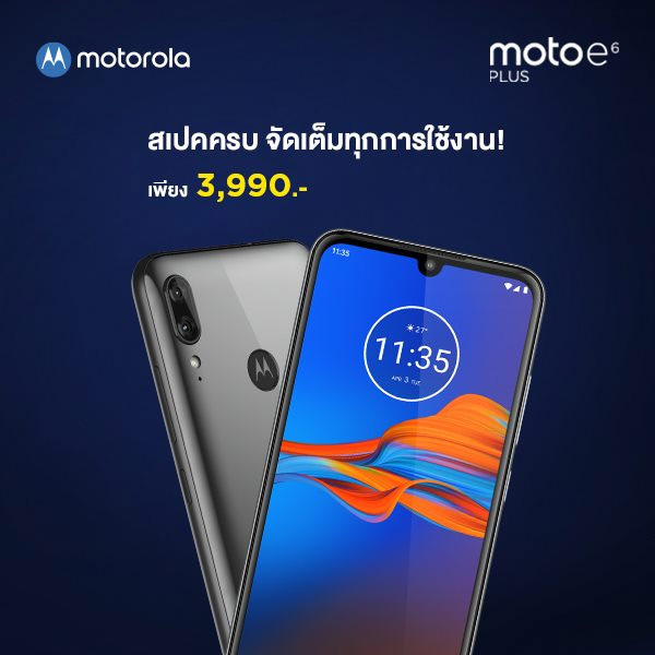 หลังจากที่เปิดตัวในต่างประเทศไทยเมื่อช่วงปลายที่ผ่านมา ล่าสุดก็เข้ามาวางจำหน่ายในบ้านเราแล้ว สำหรับ Moto E6 Plus กับราคาทางการที่ 3,990 บาท โดยมาพร้อมการปรับโฉมดีไซน์ใหม่ด้วยจอไร้ขอบทรงหยดน้ำ Max Vision Screen ขนาด 6.1 นิ้ว อัปเกรดมาใช้งานกล้องหลังคู่ (Dual Camera) บนตัวเครื่องเงางามที่พรีเมียมมากขึ้น และมีแบตเตอรี่ความจุ 3000 mAh