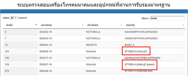 หลังจากที่มีการเปิดตัว Moto G7 Series ทั้ง 4 รุ่น ได้แก่ Moto G7, Moto G7 Plus, Moto G7 Power และ Moto G7 Play เมื่อสัปดาห์ที่ผ่านมา ล่าสุดรายชื่อของ Moto G7 และ G7 Power ได้ผ่านการรับรองจากหน่วยงาน กสทช. ของประเทศไทยแล้ว