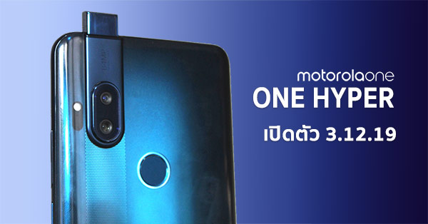 Motorola One Hyper ยืนยันเปิดตัว 3 ธ.ค. กับจอไร้ขอบ พร้อมกล้องหน้า Pop-Up ผสานกล้องหลัง 64MP และชิป Snapdragon 675 ลุ้นเข้าไทยเร็วๆ นี้