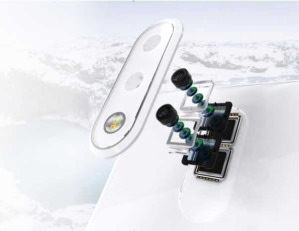 - กล้องดิจิทัลด้านหลังแบบคู่ (Dual Camera) โดยแบ่งออกเป็น กล้องตัวหลัก 16 ล้านพิกเซล รูรับแสงกว้าง f/2.0 และกล้องตัวรองสำหรับตรวจจับระยะชัดตื้น ความละเอียด 5 ล้านพิกเซล รูรับแสงกว้าง f/2.4 พร้อมไฟแฟลชแบบ Dual-Tone LED Flash