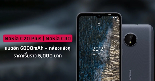 Nokia C20 Plus | C30 เผยสเปกก่อนเปิดตัว พร้อมแบตสุดอึดขนาด 6,000 mAh และ Android Go คาดเปิดราคาเริ่มที่ 5,000 บาท