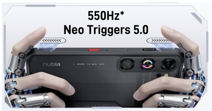 Neo 5 GT 5G มาพร้อม Shoulder Triggers และ 550Hz Neo Triggers 5.0 ช่วยให้ผู้เล่นตั้งค่าปุ่มยิง เปิดสโคป หรือใช้สกิลได้สะดวกรวดเร็วกว่าแตะหน้าจอทั่วไป เสมือนผู้ช่วยสำคัญในการคว้าชัยเหมาะสำหรับเกมแนว FPS และ Battle Royale