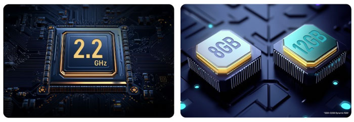 รุ่นนี้ขับเคลื่อนด้วยชิป Unisoc T7280 (12nm) บนสถาปัตยกรรม 2× Cortex-A75 @ 2.2GHz และ 6× Cortex-A55 @ 1.8GHz พร้อม GPU Mali-G57 MP1 มี RAM สูงสุด 8GB และสามารถขยาย RAM เสมือนได้อีก 12GB