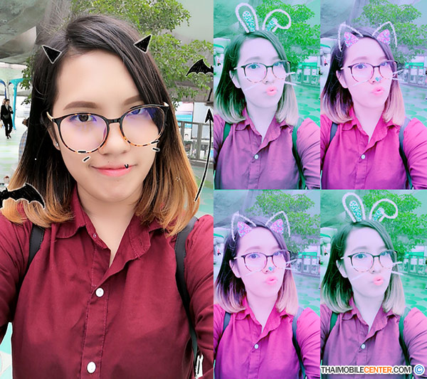 และแม้จะอยู่กลางแจ้ง มีแสงจ้า ก็สามารถเซลฟี่ได้โดยที่รายละเอียดของภาพอยู่ครบถ้วน ด้วยกล้องหน้าคู่ AI Dual Camera คมชัด 24+2 ล้านพิกเซล ฟีเจอร์ HDR Pro และเพิ่มลูกเล่นสติกเกอร์ AR Lens ให้ภาพมีสีสันเพิ่มขึ้นได้