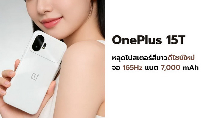 OnePlus 15T เตรียมเปิดตัวในจีน หลุดโปสเตอร์สีขาวดีไซน์ใหม่ จอ 165Hz แบต 7,000mAh
