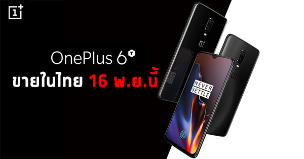 OnePlus 6T ยืนยันขายในไทย 16 พ.ย. นี้ พร้อมระบบสแกนนิ้วใต้จอ ชิป Snapdragon 845 จับคู่ RAM 8GB+ROM 256GB บนความสดใหม่ของ Android 9.0 Pie!