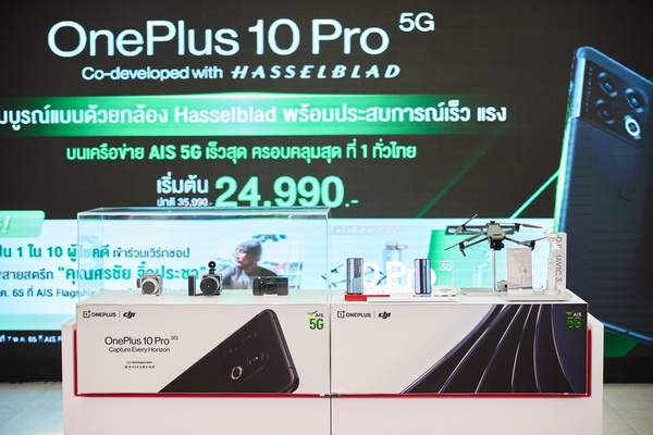 OnePlus จับมือ AIS ร่วมจัดงาน OnePlus Pop-up Event ที่ AIS Flagship Store สาขาเซ็นทรัลเวิร์ล เพื่อเปิดตัวการจำหน่ายสมาร์ทโฟนแฟลกชิปรุ่นใหม่ล่าสุด OnePlus 10 Pro 5G ครบครันที่สุดจาก OnePlus พร้อมกล้องที่ร่วมพัฒนากับ Hasselblad อย่างเป็นทางการ และเปิดโอกาสให้แฟน OnePlus และลูกค้าเอไอเอสได้เป็นเจ้าของ OnePlus 10 Pro 5G โดยนอกจากจะได้เป็นเจ้าของสมาร์ทโฟนแล้ว OnePlus ยังได้จัดเตรียมกิจกรรมสุดพิเศษเฉพาะภายในงานวันที่ 7 พฤษภาคม 2565 นี้ สำหรับ 30 ท่านแรก รับไปเลย DJI OM 5 มูลค่า 5,099.- พร้อมลุ้นรับ DJI Air 2S และ Hasselblad Bottle รวมมูลค่า 38,940.- และร่วมเป็น 1 ใน 12 ผู้โชคดี เข้าร่วมเวิร์กชอปกับช่างภาพมืออาชีพ พร้อมรับของสมนาคุณคือ E-Vip Card, OnePlus Sandstone Case และ Never Settle Luggage รวมมูลค่า 14,780.-