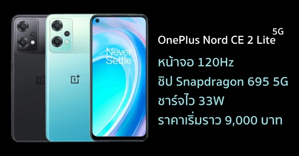 เปิดตัว OnePlus Nord CE 2 Lite 5G ชูจุดเด่นจอ 120Hz, ชิป Snapdragon 695 5G, แบต 5000mAh มีชาร์จไว 33W ในราคาเริ่มไม่ถึงหมื่น