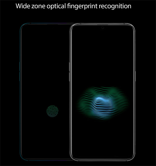 อีกหนึ่งนวัตกรรมล่าสุดของ OPPO จะมาสร้างเซอร์ไพรส์ก็คือ เทคโนโลยีจดจำลายนิ้วมือแบบออปติคัลโซนกว้าง หรือ Wide Zone Optical Fingerprint Recognition ซึ่งนับเป็นนวัตกรรมล่าสุดที่พัฒนาต่อยอดจากเทคโนโลยีสแกนลายนิ้วมือบนหน้าจอแบบปัจจุบัน ที่ถือว่าล้ำหน้ามากแล้ว แต่คราวนี้ล้ำยิ่งขึ้นไปอีกขั้นด้วยการรองรับการตรวจสอบลายนิ้วมือได้พร้อมกันถึง 2 นิ้วในเวลาเดียวกัน จึงช่วยยกระดับความปลอดภัยได้มากกว่าการสแกนด้วยนิ้วเดียวถึง 50,000 เท่า โดยเฉพาะผู้ที่ต้องทำธุรกรรม หรือชำระเงินผ่านทางสมาร์ทโฟนอยู่เป็นประจำ นอกจากนี้ยังเป็นการใช้งานร่วมกับฟีเจอร์ใหม่ที่เรียกว่า "การเข้ารหัสลับ" ที่จากเดิมต้องอาศัยการดำเนินการ 2 ขั้นตอน ที่ผู้ใช้ต้องเปิดแอปพลิเคชันการเข้ารหัสก่อนจึงจะสามารถปลดล็อกได้ แต่มาคราวนี้แอปพลิเคชันทั้งหมดที่อยู่ในพื้นที่ของ "การเข้ารหัสลับ" จะสามารถตรวจสอบความถูกต้อง และปลดล็อกเพื่อเข้าใช้งานได้ภายในคลิกเดียว
