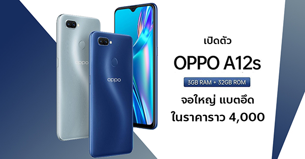 เปิดตัว OPPO A12s มือถือรุ่นเล็กเน้นจอใหญ่-แบตอึด พร้อมกล้องคู่ 13+2 ล้าน และเซ็นเซอร์สแกนนิ้ว ในราคา 4,000 นิดๆ