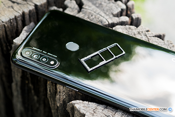 ด้านหลังมีเซ็นเซอร์สแกนลายนิ้วมือ และกล้องหลัง 3 ตัว (AI Triple Camera) จัดเรียงในแนวตั้ง ประกอบด้วยกล้องหลักความละเอียด 12 ล้านพิกเซล, กล้องเลนส์ Macro 2 ล้านพิกเซล และ Depth Sensor 2 ล้านพิกเซล พร้อมไฟแฟลช LED ไม่มีกล้องเลนส์ ultra-wide