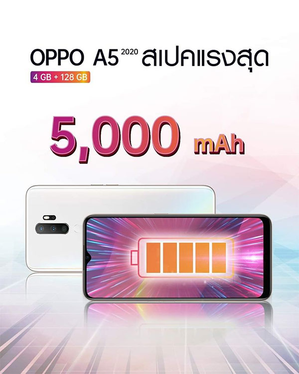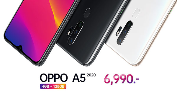 หลังจากการเปิดตัว OPPO A5 2020 สมาร์ทโฟนรุ่นใหม่จากทางตระกูล A-Series ในช่วงเดือนกันยายนที่ผ่านมา กับการจัดเต็มด้วยกล้องหลัง 4 ตัว (Quad Camera) พร้อมแบตเตอรี่ความจุ 5000 mAh ซึ่งรันด้วยชิปเซ็ต Snapdragon 665 จับคู่ RAM ขนาด 3GB และมีความจุภายในตัวเครื่อง 64GB ในราคาเพียง 4,999 บาท
