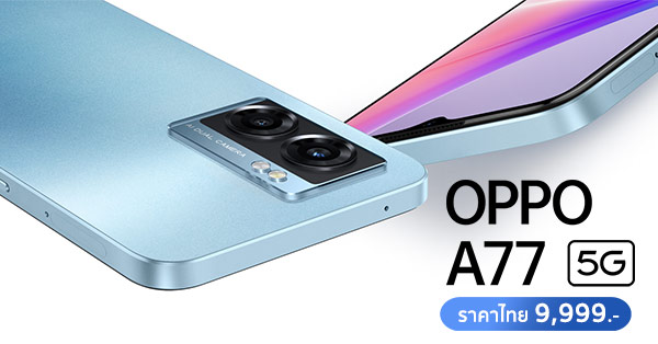 อีกหนึ่งรุ่นที่มีการเปิดตัวทางการในวันนี้จาก OPPO ได้แก่ OPPO A77 5G กับราคาทางการที่ 9,999 บาท ไม่เพียงมีการดีไซน์ที่โดดเด่น พรีเมียม แต่ยังมีสเปกจัดเต็ม และรองรับ 5G ตอบโจทย์การใช้งานในปัจจุบัน