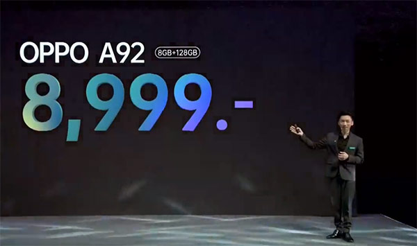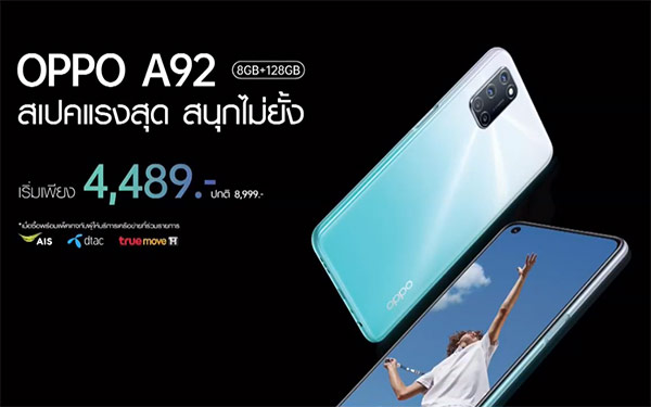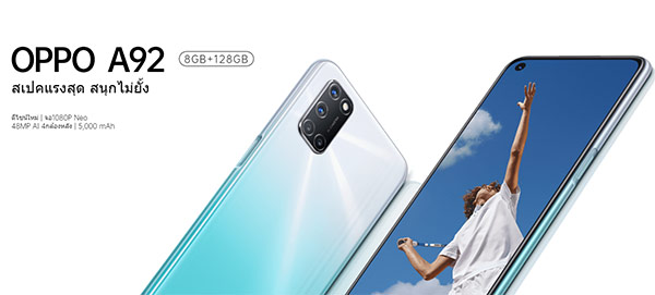 ล่าสุดก็เปิดตัวอย่างเป็นทางการในประเทศไทยแล้วสำหรับ OPPO A92 กับราคาทางการที่ 8,999 บาท โดยมาในดีไซน์ใหม่หมดจด พร้อมกล้องหลัง 4 ตัว (AI Quad Camera) และแบตอึดใช้งานได้ตลอดวัน