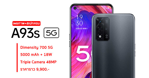 OPPO A93s 5G ว่าที่รุ่นอัปเกรด จ่อมากับชิป Dimensity 700 5G แบตชาร์จเร็ว 5000 mAh และกล้อง 48MP ลุ้นเปิดตัว 9 ก.ค.นี้ ในราคาไม่ถึงหมื่น