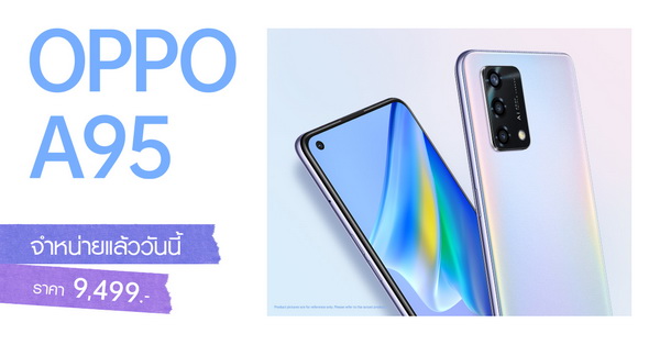 สามารถเป็นเจ้าของ OPPO A95 สมาร์ทโฟนสุดฮิตใหม่ล่าสุด ให้คุณสมาร์ทไปให้สุดฟอร์มได้แล้ววันนี้ ในราคาเพียง 9,499 บาท ที่ OPPO Brand Shop ทุกสาขาและตัวแทนจำหน่ายทั่วประเทศ