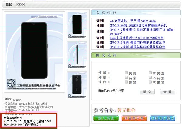 ล่าสุดรายชื่อของ OPPO A9x รุ่นอัปเกรดภายใต้ชื่อรหัส OPPO PCEMOO ได้ผ่านการรับรองจากทาง TENAA เป็นที่เรียบร้อยแล้ว พร้อมกับหน่วยความจำแรม (RAM) มากขึ้นที่ 8GB ส่วนความจำภายใน (ROM) มีขนาดเท่าเดิมที่ 128GB ซึ่งคาดว่าจะมีการเปิดตัวในประเทศจีนเร็วๆ นี้ กับราคา 1,999 หยวน (ประมาณ 9,000 บาท) และคาดว่าจะมีการลดราคาของรุ่นมาตรฐานลงด้วยเช่นกัน