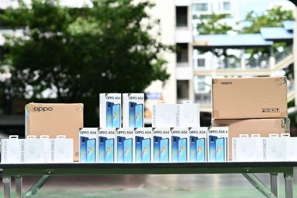 สำหรับสมาร์ทโฟนที่ออปโป้ร่วมส่งมอบนั้นเป็นรุ่น OPPO A54 รวมถึงอุปกรณ์ IoT หูฟังไร้สาย OPPO Enco Buds ให้น้องๆ ได้เรียนและโต้ตอบกับคุณครูด้วยคุณภาพเสียงที่คมชัดและตัดเสียงรบกวนได้เป็นอย่างดี ใช้งานได้ยาวนานถึง 24 ชั่วโมงซึ่งครอบคลุมการเรียนของน้องๆ “ออปโป้หวังเป็นอย่างยิ่งว่าการร่วมมือกันในครั้งนี้ จะเป็นประโยชน์อย่างยิ่งแก่น้องๆ และขอเชิญชวนพี่ๆ น้องๆ คนไทยร่วมกันส่งมอบสมาร์ทโฟนที่ท่านไม่ได้ใช้งานแล้วแต่ยังอยู่ในสภาพดี เพื่อช่วยมอบอนาคตทางการศึกษาแก่น้องๆ นักเรียน เพราะการศึกษาคือรากฐานสำคัญของการพัฒนาของมนุษย์และสังคม” คุณชานนท์กล่าวเสริม