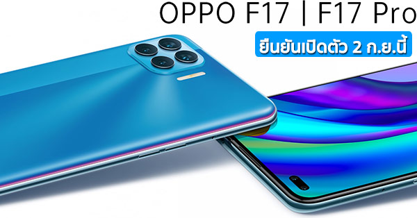 OPPO F17 | F17 Pro ยืนยันเปิดตัว 2 กันยายนนี้ พร้อมชาร์จเร็ว 30W กล้อง AI 6 ตัวในเครื่องเดียว และสแกนนิ้วใต้จอ