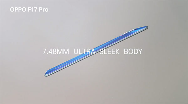 OPPO F17 | F17 Pro ยืนยันมากับดีไซน์จอไร้ขอบเจาะรูกล้องหน้าคู่แบบ Dual Punch-Hole Display พร้อมตัวเครื่องเงางาม ที่มี Texture 2 แบบ ติดตั้งกล้องหลังทั้งหมด 4 ตัว (Quad Camera) และมีตัวเครื่องบางเฉียบเพียง 7.48 มิลลิเมตร