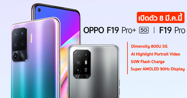 OPPO F19 Pro | Pro+ 5G ยืนยันเปิดตัว 8 มี.ค. นี้ กับชิป Dimensity 800U 5G แบตชาร์จไว 50W จอ Super AMOLED 90Hz และกล้อง 64MP