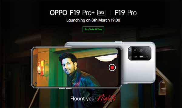 OPPO F19 Pro และ F19 Pro+ 5G จะเปิดตัวทางการในวันที่ 8 มีนาคมนี้ พร้อมกับยืนยันฟีเจอร์เด่นของรุ่น F19 Pro+ 5G อย่าง AI Highlight Portrait Video การถ่ายวิดีโอในเวลากลางคืน ด้วยกล้องหลัง 4 ตัว และรองรับ 5G แบบ Dual 5G SIM รวมถึงเทคโนโลยีชาร์จเร็ว OPPO 50W Flash Charge
