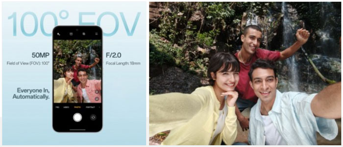 F33 Pro features a 50MP selfie cam with a 100° FOV