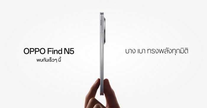 ออปโป้ปล่อยทีเซอร์ เตรียมเปิดตัว OPPO Find N5 สมาร์ตโฟนจอพับที่บางที่สุด ยกระดับความทรงพลังในทุกมิติ