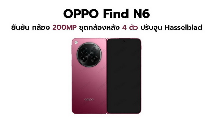 ยืนยันแล้ว! OPPO Find N6 จัดชุดกล้องหลัง 4 ตัว 200MP ปรับจูน Hasselblad พร้อมเลนส์ Danxia และมีรุ่น Satellite Edition