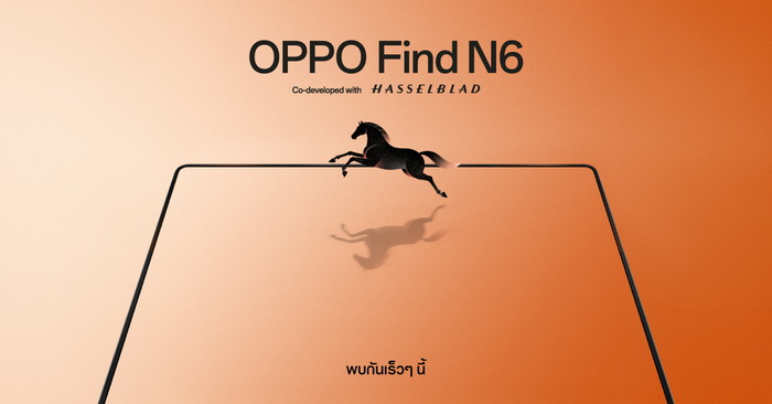 OPPO สร้างความตื่นเต้นให้กับตลาดสมาร์ตโฟนอีกครั้ง พร้อมปล่อยทีเซอร์เตรียมเปิดตัวสมาร์ตโฟนจอพับรุ่นใหม่ OPPO Find N6 ที่มาพร้อมสโลแกน “เรียบกว่า อิสระกว่า ทรงพลังทุกมิติ” พร้อมยกระดับประสบการณ์การใช้งานสมาร์ตโฟนจอพับไปอีกขั้น