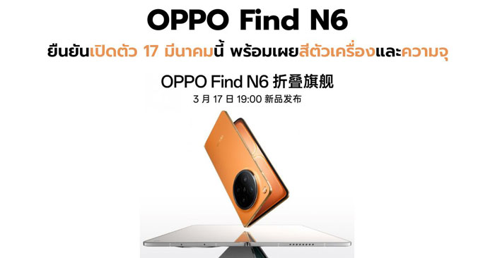 OPPO Find N6 จะเปิดตัวในวันที่ 17 มีนาคม ทั้งในประเทศจีนและบางตลาดทั่วโลก