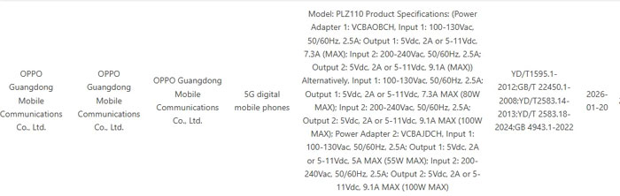 PLP110 ถูกระบุว่าเป็นรุ่นปกติของ OPPO Find N6
