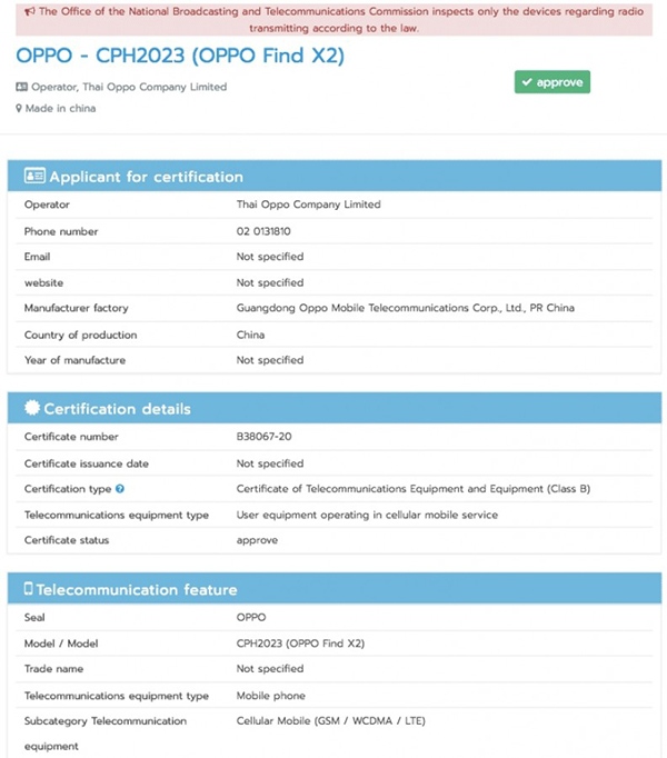 OPPO Find X2 และ X2 Pro ว่าที่เรือธงรุ่นใหม่ผ่าน กสทช. คาดมากับจอ 120Hz ลื่นไหลทัชไวเหมาะกับการเล่นเกม และระบบชาร์จเร็ว SuperVOOC 65W