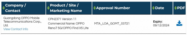 เมื่อไม่นานมานี้ สมาร์ทโฟนเลขรหัสโมเดล CPH2371 หรือ OPPO Find X5 Lite ได้ผ่านการรับรอง EU Certification ซึ่งเป็นสัญญาณที่ดีว่าสมาร์ทโฟนรุ่นดังกล่าวจะมีการเปิดตัวให้เห็นกันในเร็ว ๆ นี้ โดยเบื้องต้นคาดว่า OPPO Find X5 Lite จะมาพร้อมกับคุณสมบัติที่เหมือนกับ OPPO Reno7 เริ่มตั้งแต่ หน้าจอแสดงผลแบบ AMOLED ขนาด 6.43 นิ้ว ที่มีค่า Refresh Rate ระดับ 90Hz ภายในขับเคลื่อนด้วยชิปเซ็ตประมวลผล Snapdragon 778G ประกบคู่การทำงานร่วมกับหน่วยความจำ RAM ขนาดสูงสุด 12GB และหน่วยความจำภายในความจุสูงสุด 256GB พร้อมแตเตอรี่ขนาด 4500mAh ที่รองรับระบบชาร์จเร็วระดับ 60W
