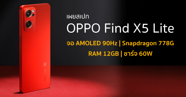OPPO Find X5 Lite เผยสเปกแรก จัดเต็มจอ AMOLED 90Hz, ชิป Snapdragon 778G และชาร์จไว 60W ลุ้นเปิดตัวเร็ว ๆ นี้