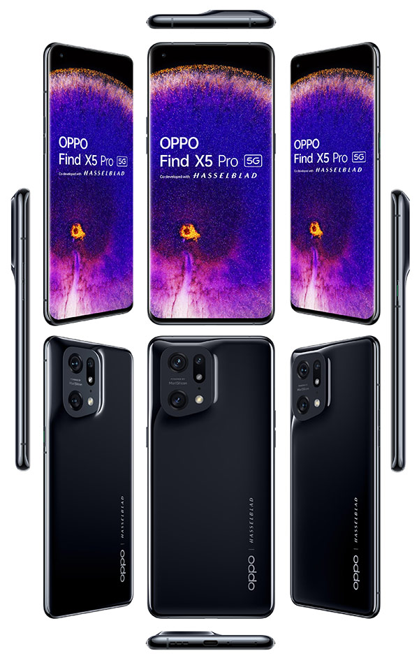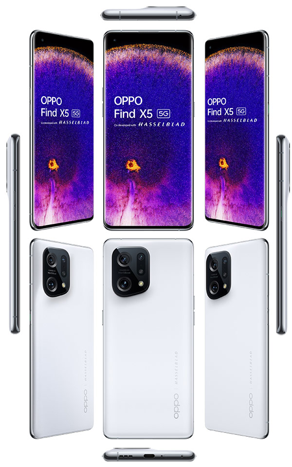 ถือเป็นการยืนยันแล้วว่า OPPO Find X5 Series ร่วมมือกับทาง Hasselblad แบรนด์กล้องชั้นนำระดับโลก โดยทั้งสองรุ่นนี้มาในดีไซน์จอไร้ขอบลงโค้งทั้งสองด้าน พร้อมเจาะรูกล้องหน้าที่มุมบนซ้าย ส่วนที่ด้านหลังมีกล้องนูนจากตัวเครื่องคล้ายกับ Find X3 Pro 5G รุ่นก่อน แต่มีการปรับเรียงกล้องแบบใหม่ พร้อมประทับโลโก้ MariSilicon ไว้อย่างชัดเจน ที่เป็น Imaging NPU (Neural Engine Processing Unit) ชิปประมวลผลภาพที่ทาง OPPO ออกแบบเอง ซึ่งรุ่น Find X5 5G จะมีแทบกล้องเป็นสีดำ และฝาหลังแบบด้าน ส่วน Find X5 Pro 5G จะเป็นสีเดียวกับตัวเครื่อง และมีฝาหลังเงางาม สำหรับ OPPO Find X5 Series คาดว่าจะมีสเปกดังนี้