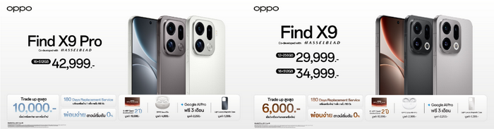 - OPPO Find X9 Pro ความจุ 16+512GB ราคา 42,999 บาท