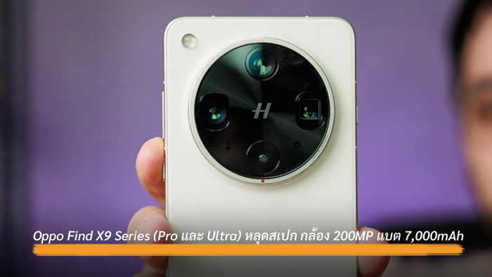 Oppo Find X9 Series (Pro และ Ultra) หลุดสเปก กล้อง 200MP แบต 7,000mAh ส่วน Pro ใช้ Dimensity 9500