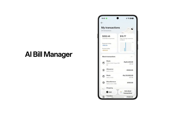 AI Mind Space ที่เปิดตัวมาพร้อม ColorOS 16 รองรับฟีเจอร์ AI Bill Manager แล้ว ซึ่งสามารถดึงข้อมูลสำคัญเกี่ยวกับค่าใช้จ่ายจากใบแจ้งหนี้ดิจิทัลและข้อมูลการชำระเงินได้โดยอัตโนมัติพร้อมบันทึกเก็บไว้ วิธีใช้งานคือเพียงเปิด AI Mind Space ด้วยการกด Snap Key หรือใช้การปัดสามนิ้ว หลังจากชำระเงินผ่านโทรศัพท์