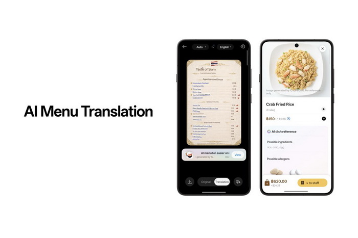อีกฟีเจอร์ถัดมาคือ AI Menu Translation ซึ่งถูกออกแบบให้เป็นผู้ช่วยด้านการรับประทานอาหารระหว่างการเดินทาง เพราะช่วยให้ผู้ใช้เข้าใจสิ่งที่กำลังจะสั่งในร้านอาหารได้ดียิ่งขึ้น ด้วยการแปลเมนูอาหาร นอกจากนี้ยังสามารถระบุส่วนผสมสำคัญ และสร้างภาพอ้างอิงของเมนูนั้น เพื่อให้เห็นหน้าตาอาหารก่อนสั่งได้ด้วย รวมถึงยังสามารถแปลงราคาเป็นสกุลเงินที่ผู้ใช้ต้องการได้อีกด้วย