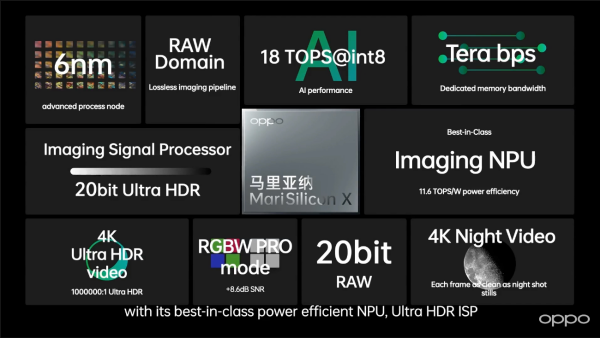ปัจจัยที่ส่งผลต่อการถ่ายภาพบนสมาร์ทโฟนในปัจจุบันมีอยู่ด้วยกันทั้งหมด 3 ข้อใหญ่ ๆ ได้แก่ เซ็นเซอร์, โมดูลกล้อง และอัลกอริทึม แต่เนื่องด้วยข้อจำกัดด้านฮาร์ดแวร์ ทำให้เรายังไม่สามารถใส่เซ็นเซอร์ และโมดูลกล้องขนาดใหญ่เหมือนกับกล้องระดับโปรได้ ซึ่งการที่จะหวังพึ่งอัลกอริทึมอย่างเดียว ก็อาจจะยังไม่ใช่คำตอบ ดังนั้นทาง OPPO จึงได้พัฒนาฮาร์ดแวร์ตัวใหม่เพิ่มขึ้นมาในชื่อ MariSilicon X ซึ่งเป็น NPU (Neural Processing Unit)