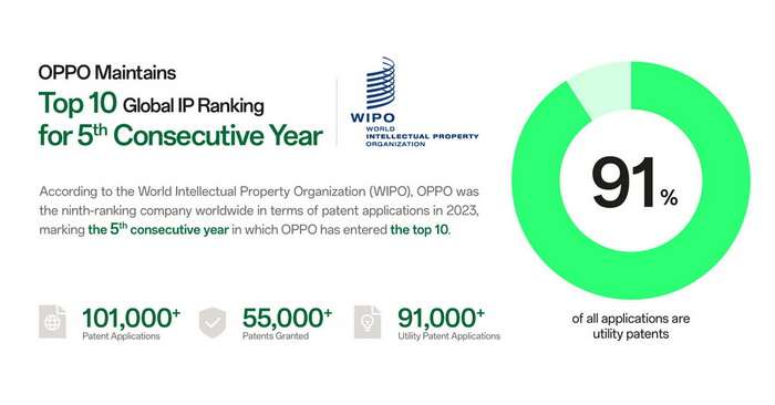 29 เมษายน 2567 กรุงเทพฯ – OPPO บริษัทเทคโนโลยีชั้นนำระดับโลก ได้เปิดตัว "OPPO Innovation and Intellectual Property White Paper" ในวันทรัพย์สินทางปัญญาโลก (IP) ซึ่งตอกย้ำถึงความมุ่งมั่นอันแน่วแน่ในการสร้างสรรค์นวัตกรรมและการคุ้มครองทรัพย์สินทางปัญญา จากข้อมูลขององค์การทรัพย์สินทางปัญญาโลก (WIPO) OPPO อยู่ในอันดับที่ 9 ของโลกในสิทธิบัตรที่ยื่นภายใต้สนธิสัญญาความร่วมมือด้านสิทธิบัตร (PCT) ในปี 2023 นับเป็นปีที่ 5 ติดต่อกันในสิบอันดับแรกของโลก ณ วันที่ 31 มีนาคม 2024 OPPO ได้ยื่นคำขอรับสิทธิบัตรมากกว่า 101,000 รายการทั่วโลก โดยมีสิทธิบัตรที่ได้รับอนุมัติแล้วมากกว่า 55,000 รายการ และ 91% ของการยื่นขอรับสิทธิบัตรทั้งหมดเป็นสิทธิบัตรด้านอรรถประโยชน์