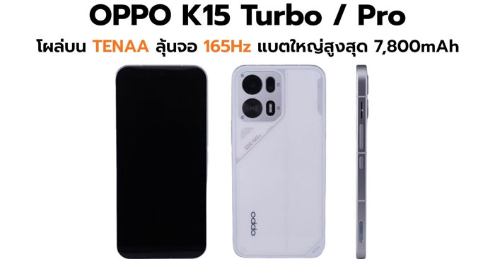 OPPO K15 Turbo และ OPPO K15 Turbo Pro โผล่บน TENAA ลุ้นจอ 165Hz แบตใหญ่สูงสุด 7,800mAh
