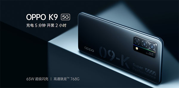 ภายในของ OPPO K9 5G จะขับเคลื่อนด้วยชิปเซ็ต Qualcomm Snapdragon 768 ซึ่งทางค่ายเผยว่าทำคะแนน AnTuTu ได้สูงถึง 450,000+ คะแนน ด้านแบตเตอรี่มีขนาด 4300mAh พร้อมรองรับระบบชาร์จไว 65W สามารถชาร์จเต็ม 100% ภายใน 35 นาที อีกทั้งยังมีระบบระบายความร้อนแบบ VC Liquid-Cooled Heatsink เพื่อให้เครื่องถ่ายเทความร้อนได้อย่างรวดเร็ว และทำงานได้อย่างมีประสิทธิภาพมากขึ้น