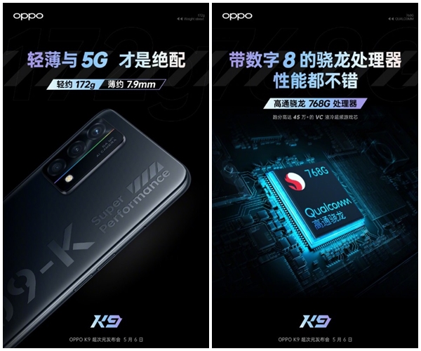 OPPO K9 5G เผยสเปก จัดเต็มชิป Snapdragon 768G พ่วงระบบระบายยความร้อน บนตัวเครื่องบางเฉียบ 7.9 มม. เตรียมเปิดตัว 6 พ.ค. นี้