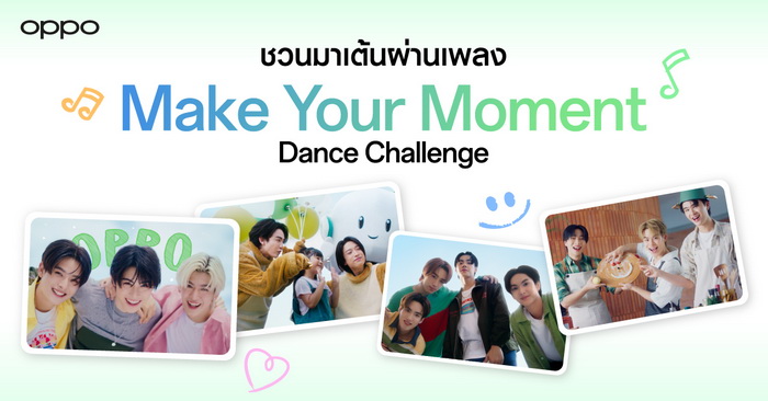 OPPO ชวนทุกคนมาเติมจังหวะสนุกๆ กับกิจกรรม Dance Challenge กับแผ่นเสียง “Make Your Moment” นี้ เปิดโอกาสให้ทุกคนได้ปลดปล่อยความเป็นตัวเอง ถ่ายทอดโมเมนต์เล็กๆ แต่พิเศษ พร้อมเก็บภาพทุกความทรงจำดีๆ ให้ Make Your Moment ไปด้วยกัน ทุกคนสามารถร่วมกิจกรรมนี้ได้ง่ายๆ เพียงแค่