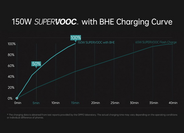 150W SUPERVOOCTM flash charge ยังมีการรวม Battery Health Engine ของ OPPO ซึ่งเปิดตัวใน OPPO Find X5 series เมื่อสัปดาห์ที่แล้ว โดยเทคโนโลยีนี้ช่วยรักษาระดับแบตเตอรี่ได้ที่ 80% ของความจุเดิมหลังจากรอบการชาร์จถึง 1,600 รอบ ซึ่งเพิ่มเป็นสองเท่าของมาตรฐานอุตสาหกรรมปัจจุบันที่อยู่ที่ 800 รอบ