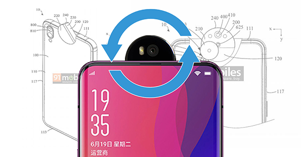 แหล่งข่าวรายงานว่า สิทธิบัตรดังกล่าวของ OPPO ยื่นจดทะเบียนตั้งแต่เดือนตุลาคม 2018 และเพิ่งจะผ่านการพิจารณาเมื่อวันที่ 28 พฤษภาคมที่ผ่านมา สิทธิบัตรดังกล่าวเป็นดีไซน์กล้องสมาร์ทโฟนแบบใหม่ ซึ่งเป็นลูกผสมระหว่างกล้องหน้าเด้งได้ (pop-up) กับกล้องหน้าหมุนได้ (flip) เมื่อไม่ได้ใช้งาน โมดูลกล้องรูปครึ่งวงกลมจะซ่อนอยู่หลังหน้าจอ เมื่อเรียกใช้งาน โมดูลดังกล่าวจะหมุน 180 องศาด้วยกลไกฟันเฟืองเพื่อยกกล้องหน้าขึ้นมาเหนือจอ ทั้งนี้ เป็นไปได้ว่าโมดูลดังกล่าวอาจจะติดตั้งเซ็นเซอร์อื่นๆ เอาไว้ด้วย แม้จะไม่ได้ระบุไว้ในสิทธิบัตรก็ตาม