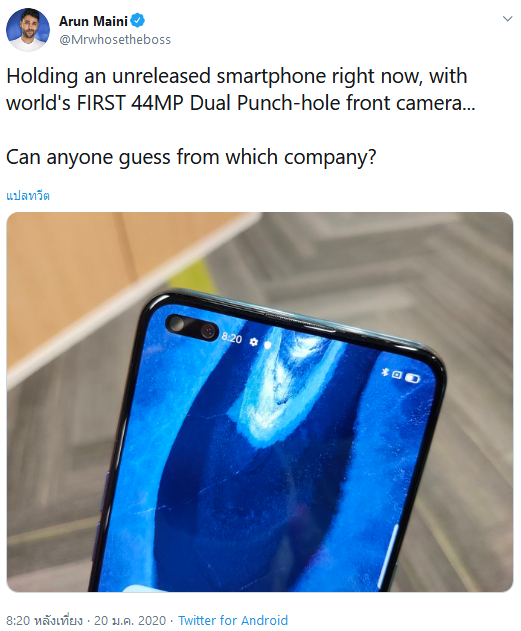 ลือ OPPO Reno 3 Pro อาจเปิดตัวเวอร์ชันอัปเกรดที่มีกล้องหน้าคู่ 44+2 ล้านรุ่นแรกของโลก ในประเทศอินเดียเร็วๆ นี้