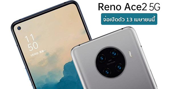 OPPO Reno Ace2 5G จ่อเปิดตัว 13 เมษายนนี้ กับกล้องหลัง 4 ตัวดีไซน์ใหม่ พร้อมกล้องหน้าฝังบนจอ พลังชิป Snapdragon 865 และชาร์จเร็ว 65W Super VOOC 2.0